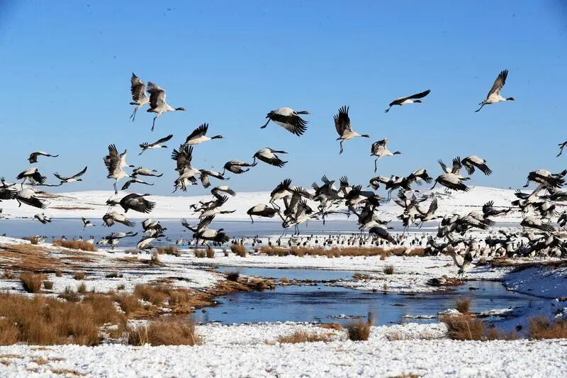 這里是中國一級重點(diǎn)保護(hù)野生動物黑頸鶴的越冬棲息地和集散地,有“中國黑頸鶴之鄉(xiāng)”的美譽(yù)。每年入冬時(shí)節(jié),在平均海拔3200米的云南昭通大山包濕地,上千只高原精靈黑頸鶴如約而至,或翩翩起舞,或信步滑翔,成為高原凈土上最美麗的風(fēng)景線。2022年,到大山包保護(hù)區(qū)越冬棲息的黑頸鶴增至1926只,是歷年來黑頸鶴越冬穩(wěn)定期的歷史最高峰值,展現(xiàn)了當(dāng)?shù)厣锒鄻有员Wo(hù)的巨大成效和豐碩成果。