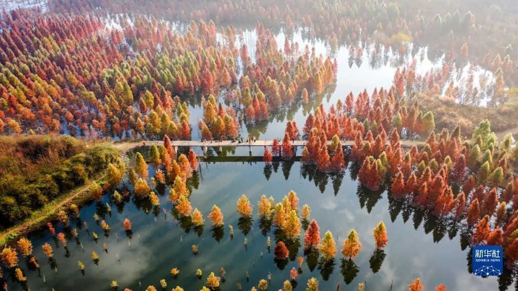 2021年12月10日拍攝的云南省昆明市的甸尾村水杉濕地一景(無人機(jī)照片)