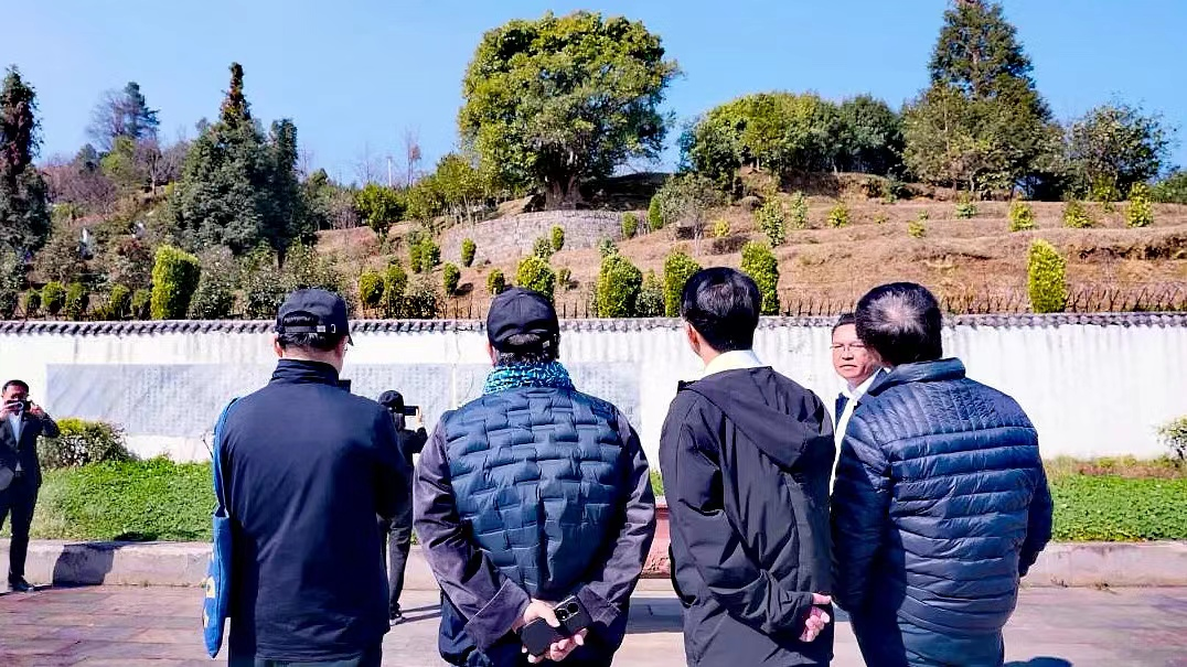 2月13日,莫言來到鳳慶縣小灣鎮(zhèn)錦秀村,參觀錦繡茶尊。在這棵地球上已知最古老的茶樹下,莫言靜靜的長久駐足,仿佛在傾聽大茶樹講述3200年來的人世翻涌、滄海桑田。