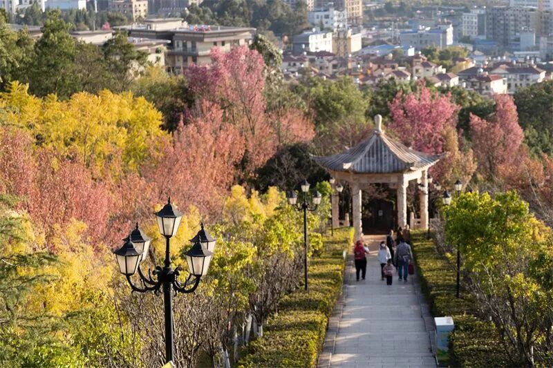 福塔位于楚雄市東山之巔,是一座以彩畫(huà)木雕石刻銅鑄藝術(shù)展示中華福文化的景觀塔,有“中國(guó)第一福塔”之稱(chēng),塔內(nèi)塔外,各體福字和各種福圖數(shù)不勝數(shù)。元旦期間,正是登塔賞花的好時(shí)機(jī),快去邂逅冬日好風(fēng)景。