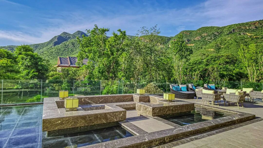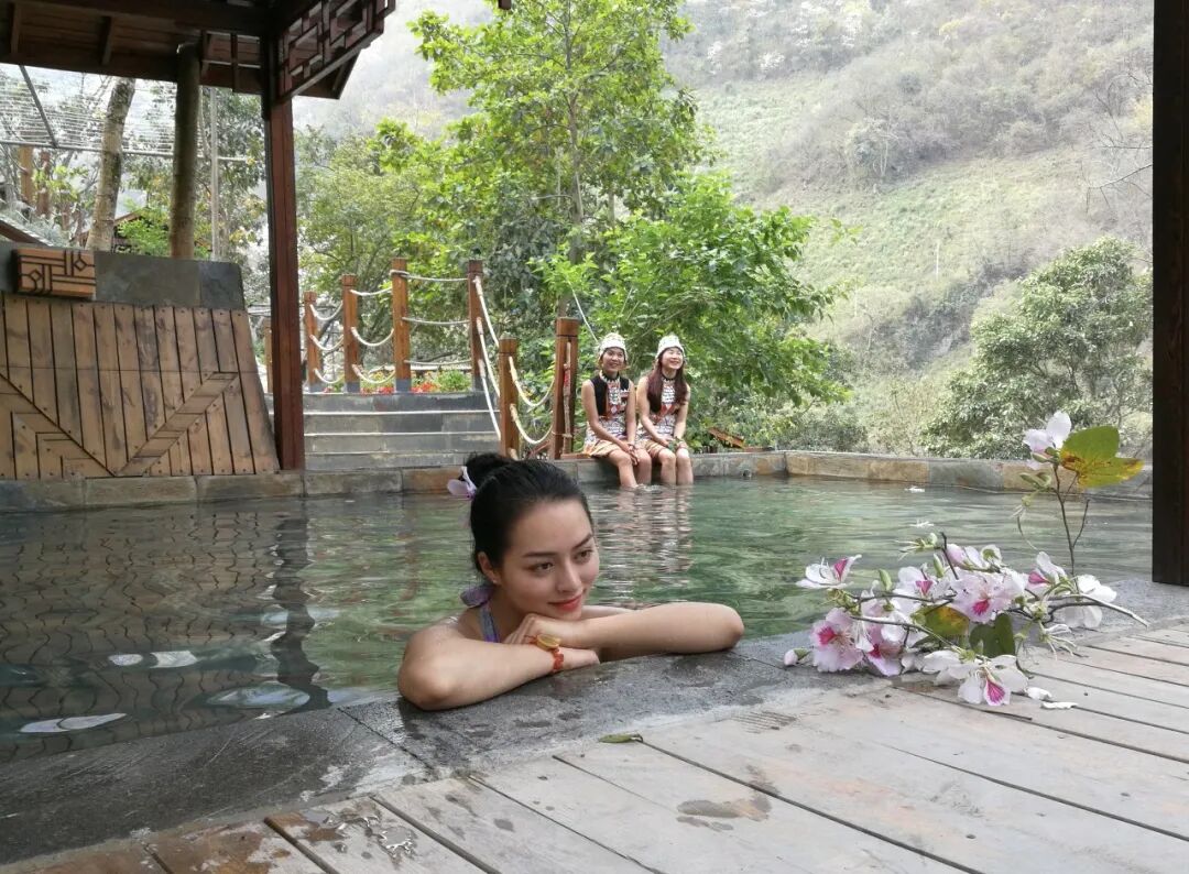 用湯泡滿全身,眼前美景環(huán)繞,如詩如畫