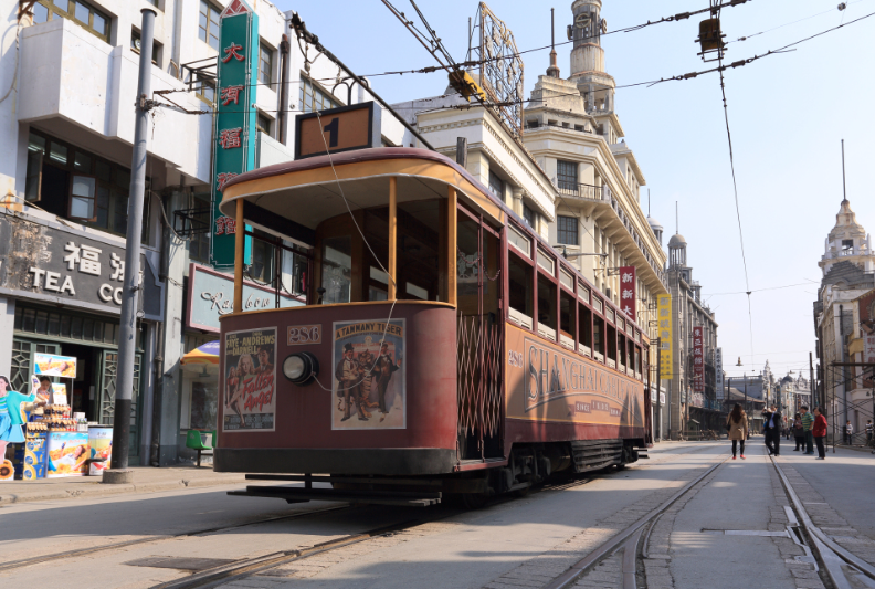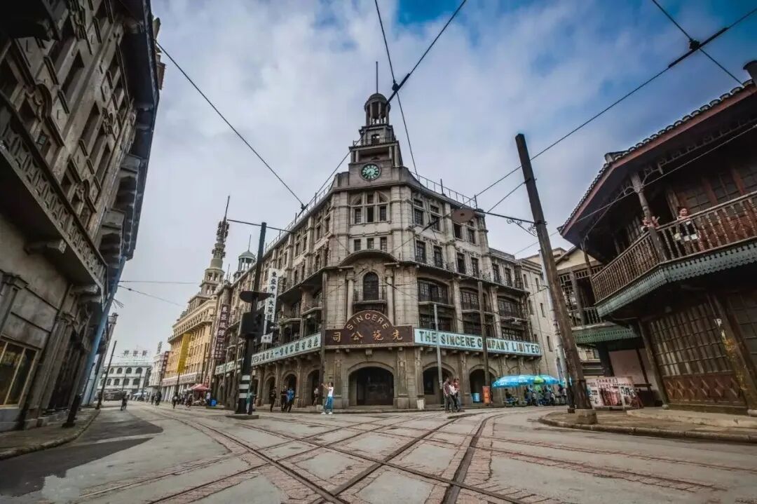 不僅僅是影視基地,還是老上海的重現(xiàn)。棕綠色的電車在這里穿梭、上世紀30年代的服裝在櫥窗售賣、有年代感的建筑一排排豎立在街道,仿佛在《情深深雨蒙蒙》《色戒》《功夫》等影視劇的場景中。