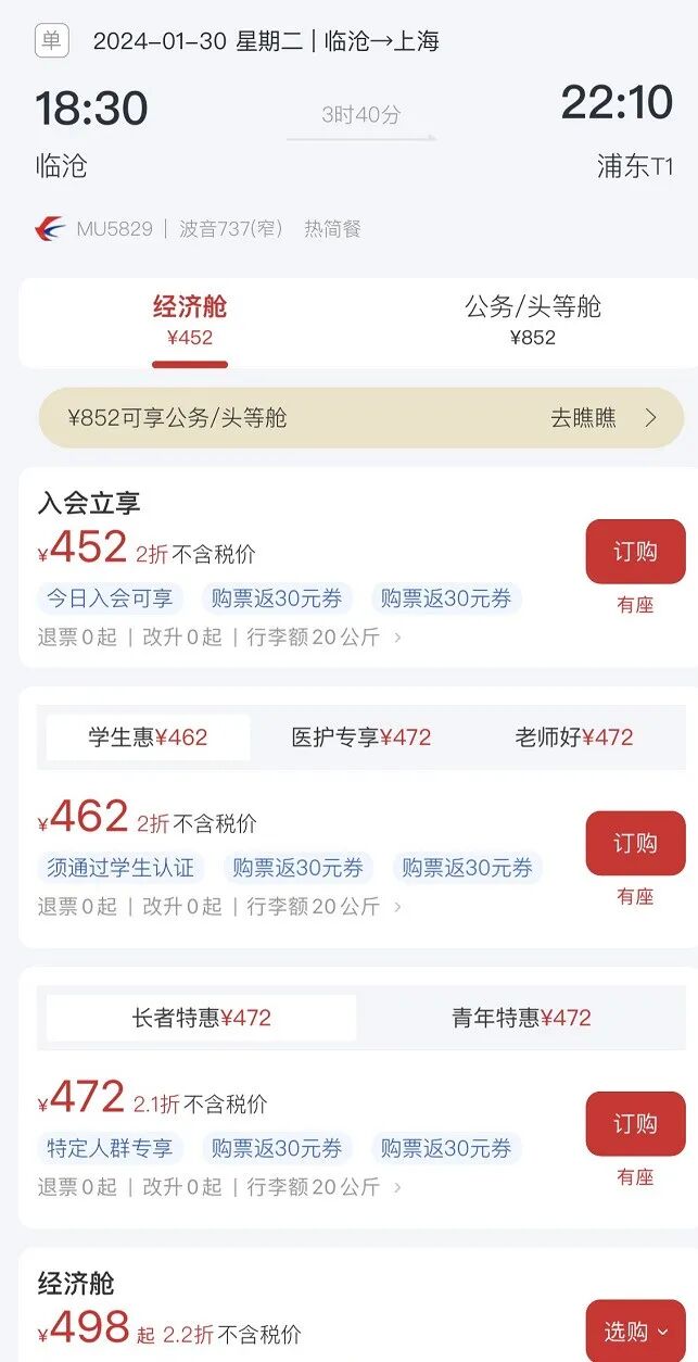 東方航空APP購買示例