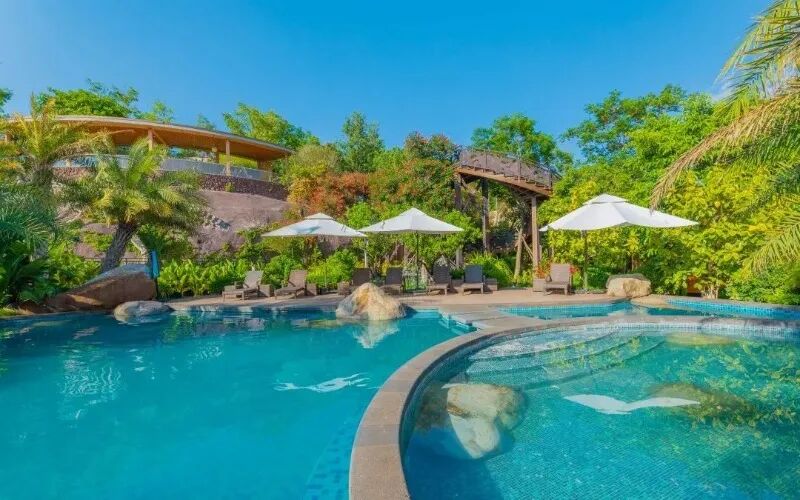 景區(qū)內(nèi)的恐龍谷溫泉酒店,有38個戶外康養(yǎng)池和6套精品湯屋,一個6500㎡室內(nèi)親子樂園、14個私人康體理療SPA房,滿足游客溫泉康養(yǎng)、健康美食、康體SPA等需求。