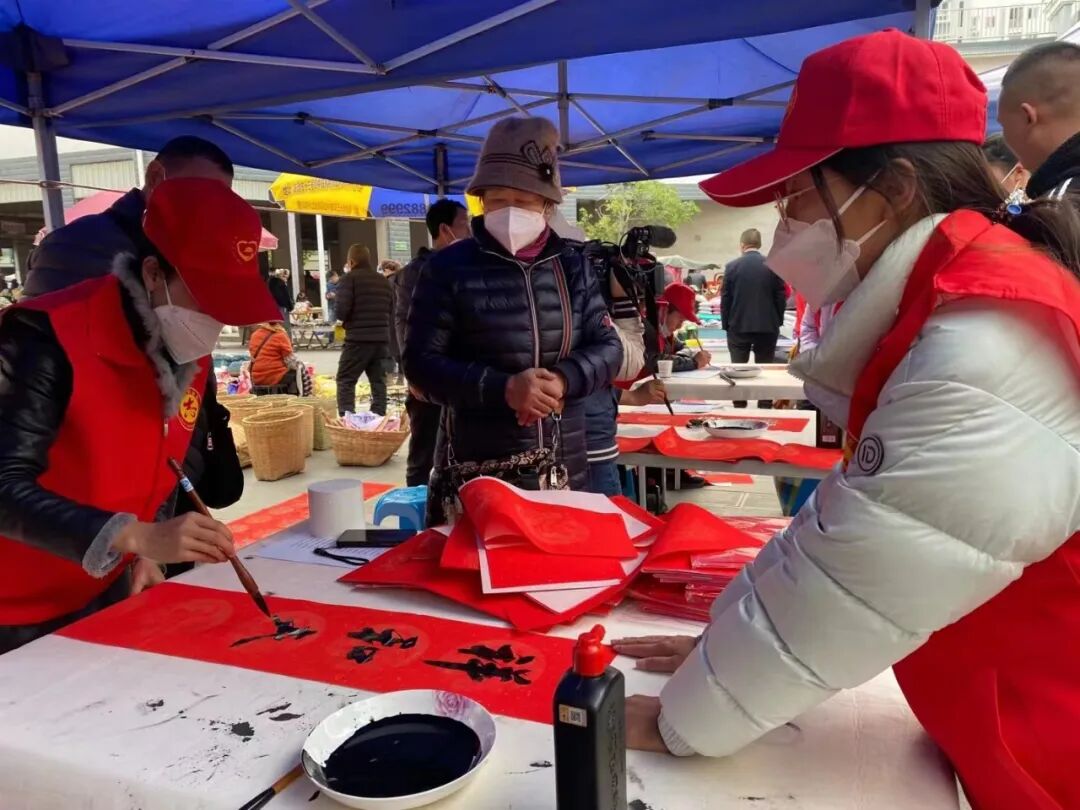 為群眾現(xiàn)場免費寫春聯(lián)。