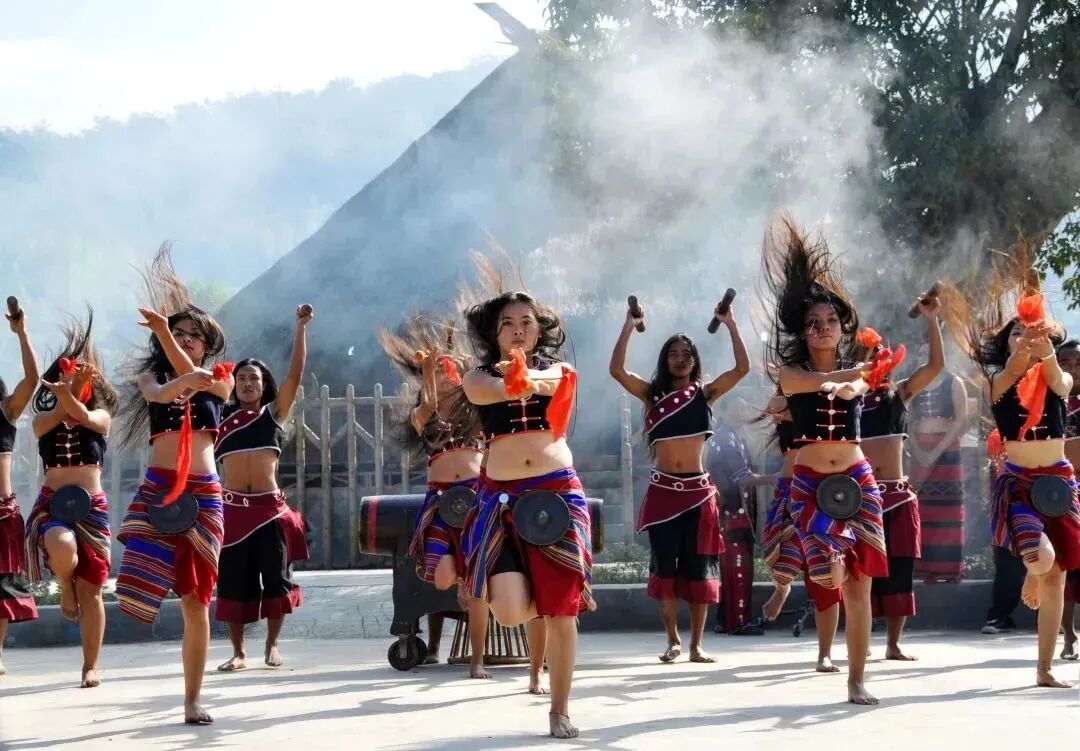 以孟定特有的非遺元素的節(jié)目,如:馬鹿舞、緊那羅舞、傣族古樂、女創(chuàng)拳、傣刀、傣棍等節(jié)目為主,配以各民族、各行業(yè)以及邊境村的其他節(jié)目,組成一臺精彩紛呈的晚會。