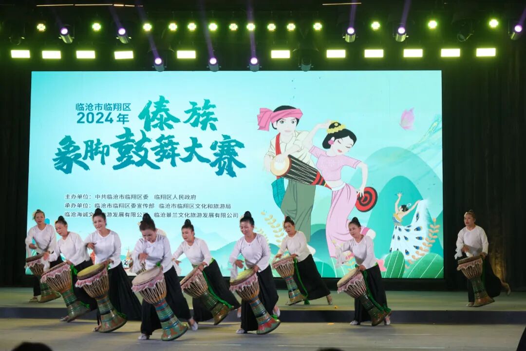 潑水節(jié)期間,臨翔區(qū)2024年傣族象腳鼓舞大賽在佤山鳳城莫罕麗廣場(chǎng)舉行,來(lái)自臨翔區(qū)鳳翔街道、忙畔街道、博尚鎮(zhèn)、章馱鄉(xiāng)等傣族村寨的9支隊(duì)伍在舞臺(tái)上一決高下。選手們身著艷麗的傣族服飾,合著铓鑼聲,邁著歡快的舞步依次上臺(tái)展示鼓韻舞姿。指擊、掌擊、拳擊、肘擊、膝擊、腳跟擊等多種打法與或委婉流暢、或高亢、或激昂的鼓點(diǎn)交融,極具舞臺(tái)表現(xiàn)力和藝術(shù)感染力,贏得了現(xiàn)場(chǎng)觀眾的連連叫好聲。