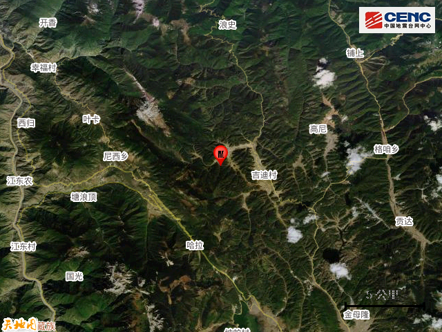 震中地形:震中5公里范圍內(nèi)平均海拔約3460米。