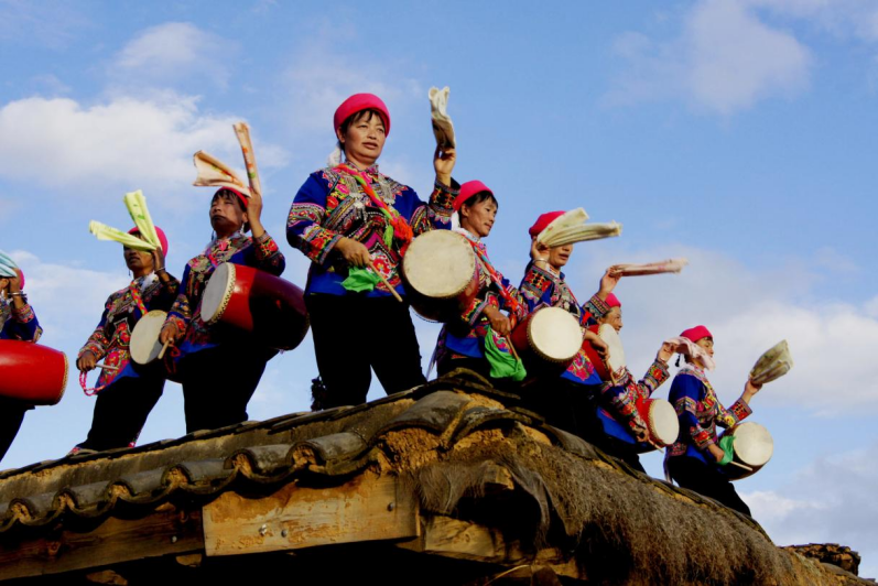 花鼓舞,彝語稱“熱波比”,是一種極具觀賞性的舞蹈。每年農(nóng)歷二月初二“龍?zhí)ь^”前后舉辦的花鼓文化活動,是安龍堡最盛大的民族民間節(jié)日。