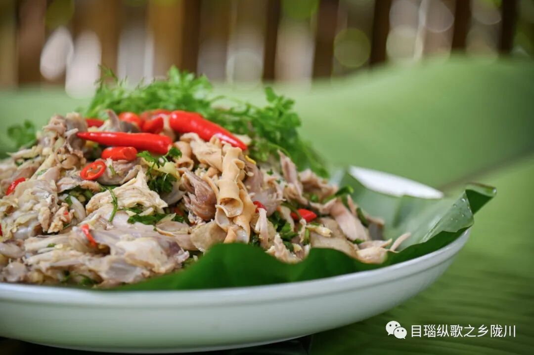 “鬼雞”是景頗族特色美食,將煮熟的雞肉撕成細(xì)絲,搭配剁碎的姜、蒜、緬芫荽、檸檬葉等天然佐料,再加入鹽、味精、醬油等調(diào)味。這道菜肉質(zhì)細(xì)嫩,酸辣鮮香,獨(dú)特的風(fēng)味令人回味無窮,盡顯景頗族飲食文化的魅力。