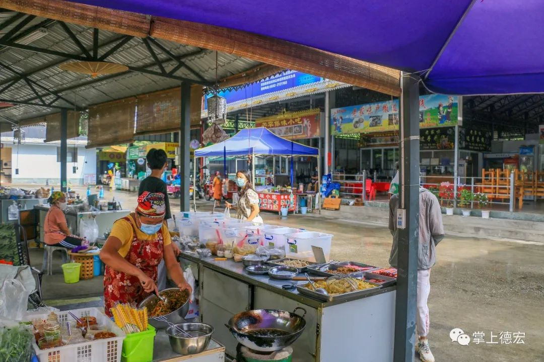 芒市勐巴娜西美食城更是國(guó)內(nèi)外游客心中的美食天堂,美食城內(nèi),店家林立,各色小吃琳瑯滿目,來到這里,潑水粑粑、泡魯達(dá)、泡雞腳、菠蘿飯、德宏餌絲、過手米線、撒苤、手抓飯等美食、甜品應(yīng)有盡有。就連搭配小吃的腌菜膏蘸水、樹番茄蘸水、百香果蘸水、涮涮辣蘸水等各色蘸水,味道也是一絕。