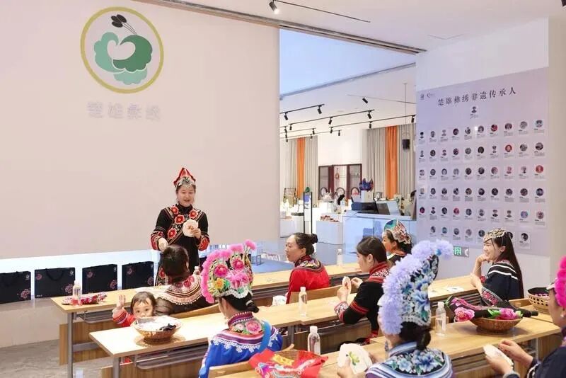 成立由宣傳部門牽頭抓總的彝繡產(chǎn)業(yè)專班,出臺37條支持政策,構(gòu)建“政策引領(lǐng)—平臺賦能—金融支撐—數(shù)字驅(qū)動”全產(chǎn)業(yè)鏈生態(tài)。制定了全國首個《楚雄彝繡手工刺繡生產(chǎn)技術(shù)》團(tuán)體標(biāo)準(zhǔn),注冊了全國首個非遺服裝服飾類區(qū)域公用品牌“楚雄彝繡”。創(chuàng)新推出“彝繡貸”“彝繡?!钡?1項金融舉措,全省金融機(jī)構(gòu)累計為彝繡經(jīng)營主體提供優(yōu)惠貸款4.29億元,物流成本降低近40%。通過“歸雁回巢”、繡娘培訓(xùn)等計劃,楚雄州為農(nóng)村繡娘、殘障人士、老弱群體創(chuàng)造大量崗位,形成“區(qū)域有園區(qū)、縣縣有企業(yè)、鄉(xiāng)鄉(xiāng)有車間、村村有繡坊”的格局,讓非遺不僅能“傳承”,更能“致富”。