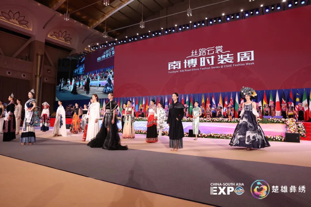 楚雄時裝周作為楚雄彝繡延伸發(fā)展的非遺品牌。2023年,首屆楚雄時裝周成功舉辦,吸引7國、國內(nèi)6省區(qū)及云南16州市的24支代表隊參與,呈現(xiàn)1100余套服飾、舉辦39場專場發(fā)布,迅速確立其在中國非遺時尚領(lǐng)域的重要地位。2024年,第二屆楚雄時裝周實現(xiàn)跨越升級,在北京中軸線舉辦“非遺彝繡秀北京”大型展演,并首度登陸巴黎時裝周舉辦非遺專題展覽,實現(xiàn)楚雄、昆明、北京、巴黎四城聯(lián)動?;顒荧@得美聯(lián)社、法新社等160余個國家主流媒體的廣泛報道,兩屆時裝周全球傳播量突破34.7億次,國際能見度與品牌影響力大幅提升。2025年6月,楚雄時裝周升級版——“絲路云裳·南博時裝周”亮相第九屆中國—南亞博覽會,來自南亞東南亞8個國家及省內(nèi)外多個代表團(tuán)舉辦35場服飾走秀。