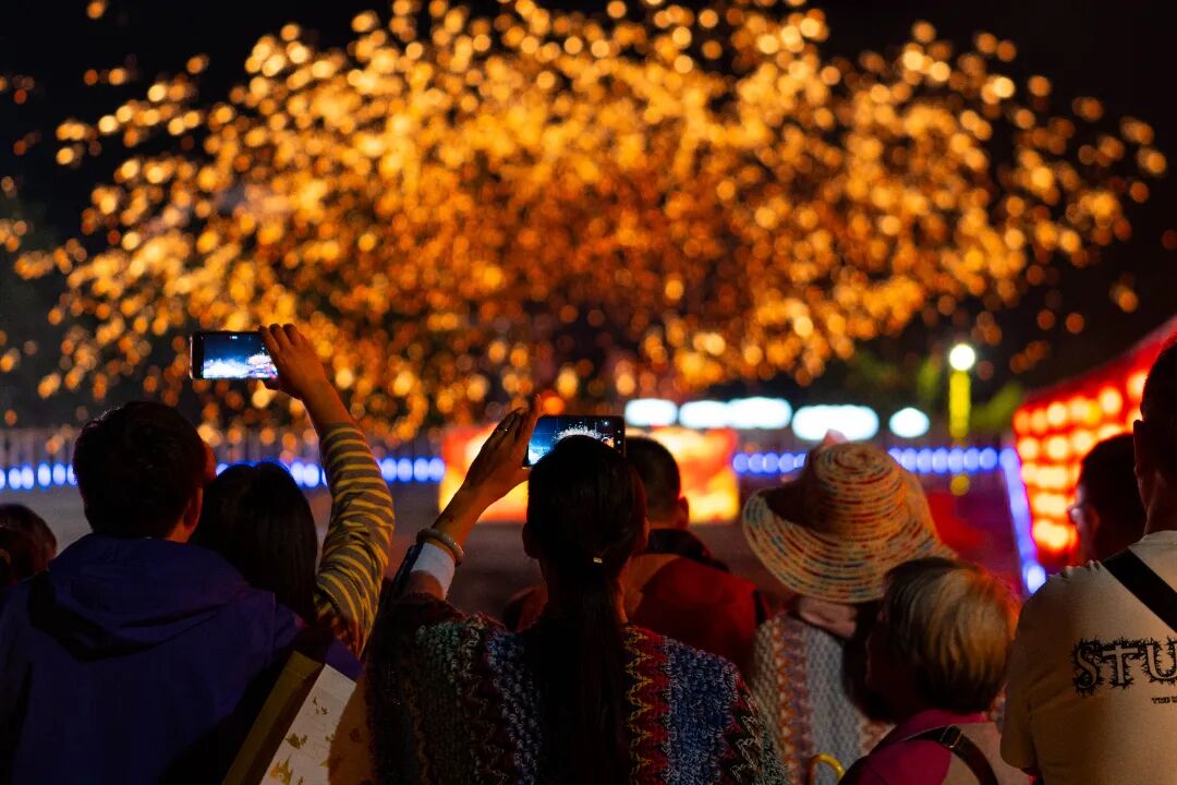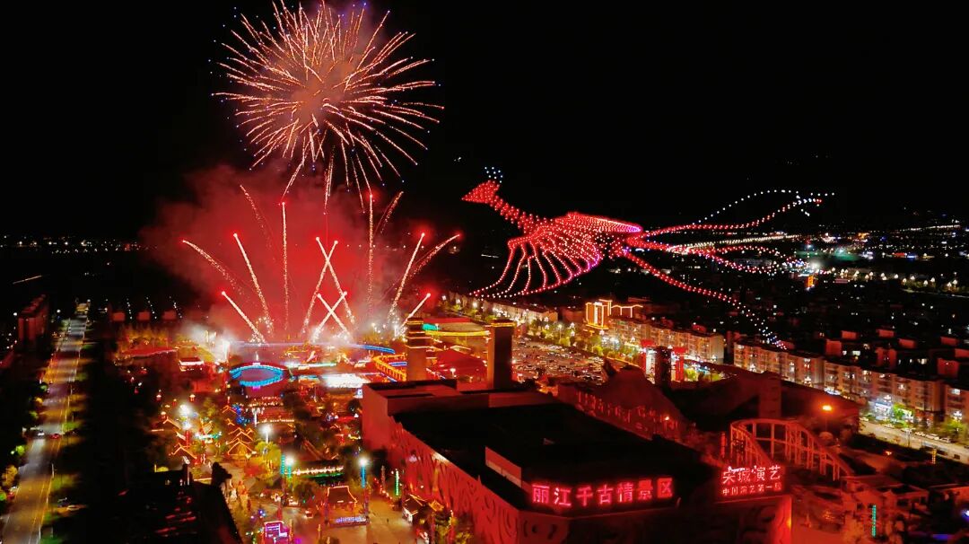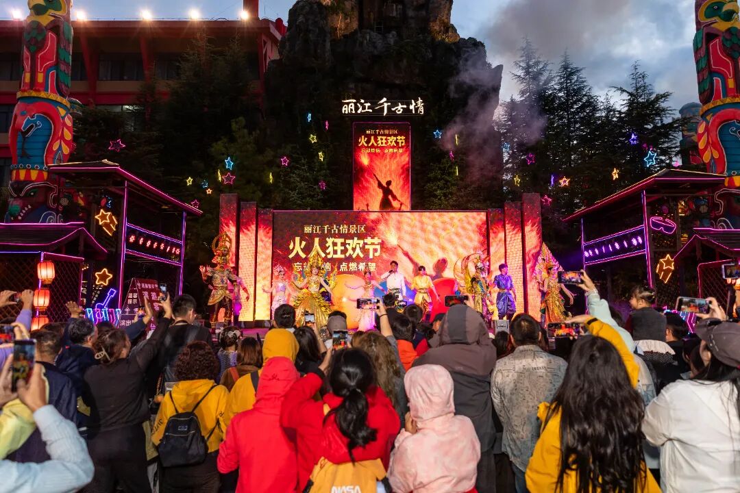 國慶期間,麗江千古情景區(qū)“火人狂歡節(jié)”吸引了不少的游客朋友?,F(xiàn)象級非遺達(dá)人空降,火秀儀典盛大而浪漫?;顒蝇F(xiàn)場,無數(shù)架無人機直沖云霄。以蒼穹為幕,以雪山為景,“火人”手持火炬攀登焰火“天梯”,在高原之上點燃開幕儀式圣火。