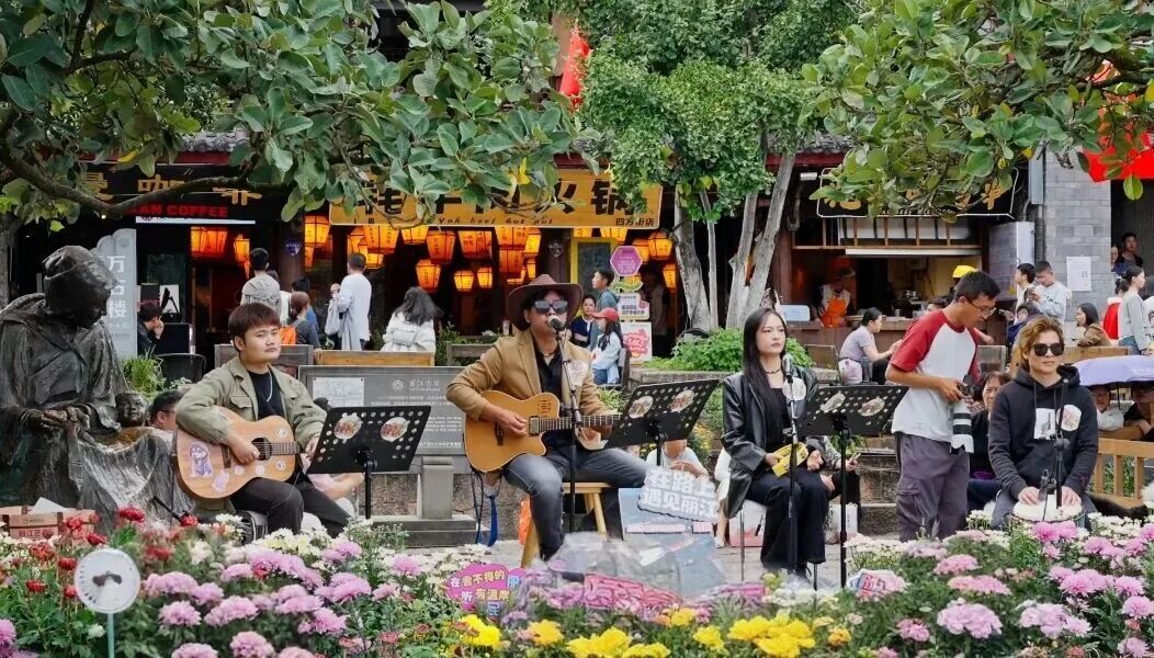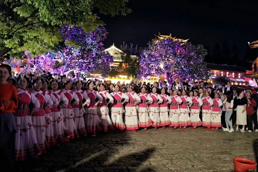 “麗江民謠音樂季”路演活動在四方街溫情開唱,吉他輕撥,歌聲悠揚,自由與浪漫在石板路上流淌,過往游客紛紛駐足聆聽,仿佛與靈魂深處的詩意不期而遇;在四方街,每晚舉行的“篝火打跳”成為游客最熱衷的互動體驗項目,熊熊篝火燃起,歡快的樂聲回蕩在街巷之間;與此同時,大研納西古樂會每晚奏響的“納西古樂”則帶來另一番意境,古老的樂器、莊重的曲調(diào),仿佛將人帶回千年前的時光長河;在四方街廣場開展的“做月餅、品月餅”主題活動將在現(xiàn)場制作、展示麗江傳統(tǒng)月餅,邀請廣大市民、游客朋友免費品嘗,感受中秋的節(jié)日氣氛。