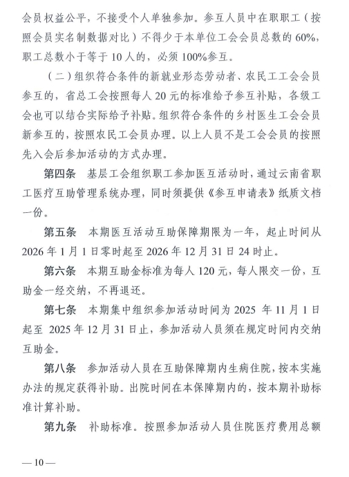 云南省職工醫(yī)療互助,是工會組織凝聚職工力量、傳遞互助關(guān)愛的暖心工程。它像一把堅實的“健康守護傘”,在基本醫(yī)保的基礎(chǔ)上,為廣大職工再筑起一道抵御疾病風險的防線?,F(xiàn)在,第二十二期云南省職工醫(yī)療互助活動(以下簡稱“醫(yī)互活動”)已開啟,紅河州總工會誠摯邀請全州職工朋友積極參保,攜手互助,共御風險。