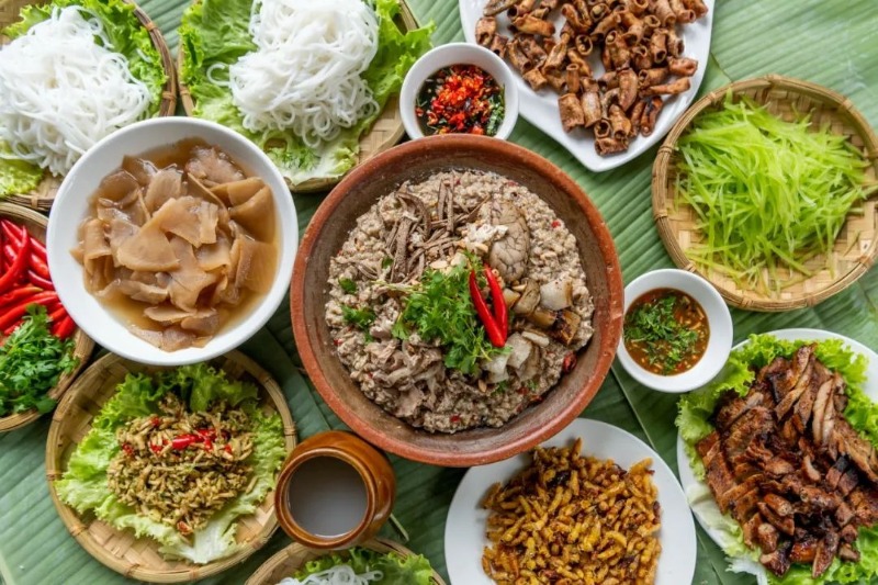 而德宏的味道則是一首跨界交響曲。傣族的“撒撇”酸辣開胃,景頗族的“綠葉宴”野趣盎然,阿昌族的“過手米線”趣味橫生。緬甸的泡魯達(dá)與本地小吃相映成趣,夜市里升騰的炊煙分不清來自哪國,卻同樣溫暖。