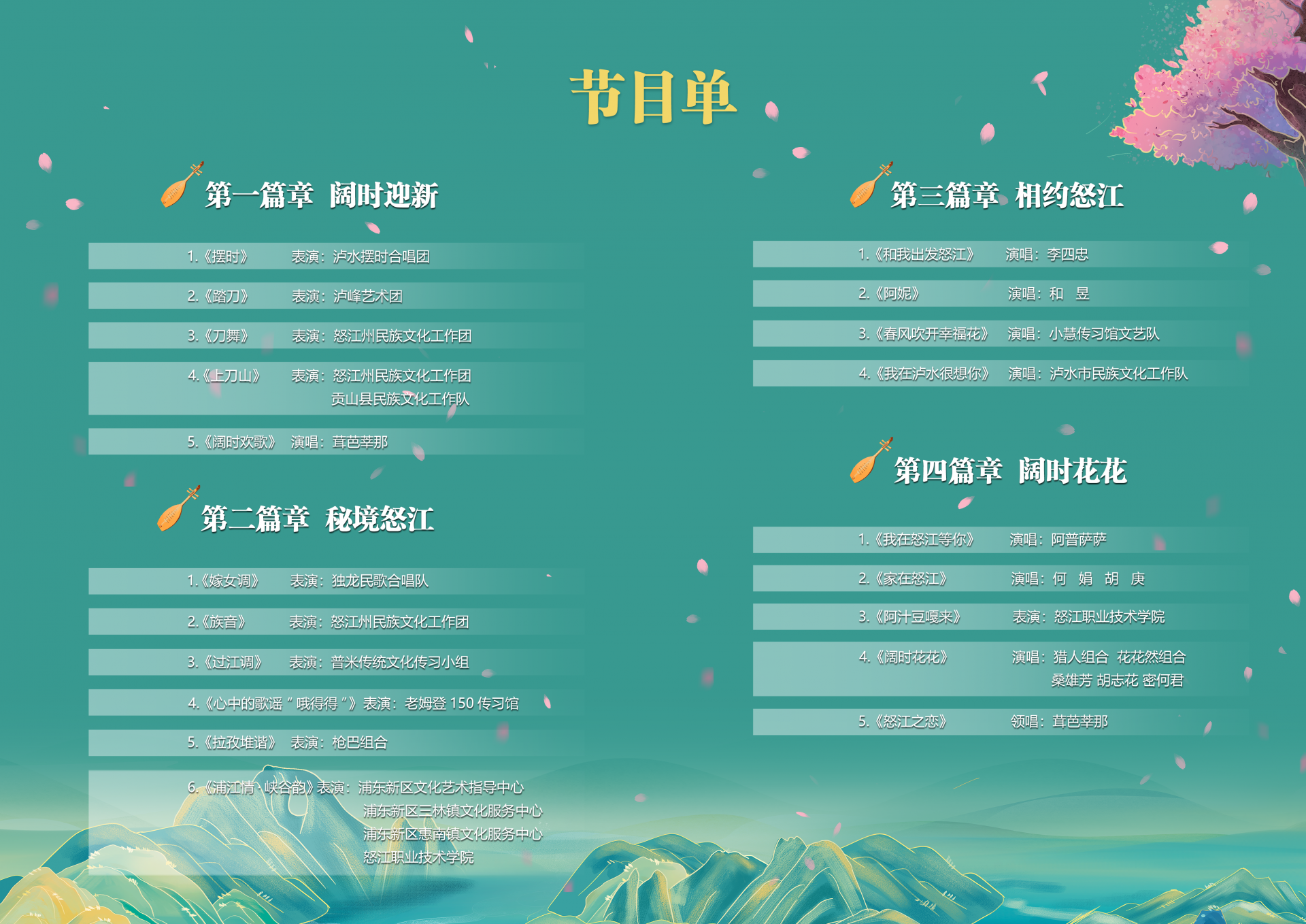 目前,2026怒江傈僳“闊時”節(jié)主題文藝演出也已進入預熱階段,這場演出精心設置「闊時迎新」「秘境怒江」「相約怒江」「闊時花花」四個篇章,節(jié)目單已正式公布:既有瀘水擺時合唱團的《擺時》、瀘峰藝術團的《踏刀》等傈僳族經(jīng)典藝術表演,也有獨龍民歌合唱隊的《嫁女調(diào)》、普米傳統(tǒng)文化傳習小組的《過江調(diào)》等多民族文化節(jié)目,還有滬滇協(xié)作的《浦江情·峽谷韻》登臺亮相,茸芭莘那、阿普薩薩等歌手也將帶來《闊時歡歌》《我在怒江等你》等經(jīng)典演唱。演出匯聚怒江本地文藝團體、傳習館、職業(yè)院校,以及上海浦東文化單位的力量,屆時各民族文化將在舞臺上碰撞交融,成為今年闊時節(jié)里展現(xiàn)民族交往交流交融的又一精彩亮點。