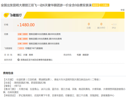 該旅游產(chǎn)品廣告鏈接:全國出發(fā)昆明大理麗江雙飛一動6天奢華跟團游一價全含0自費雙表演