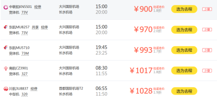 從行程看,北京至昆明出發(fā)時查詢的往返機票價格最低為900元。